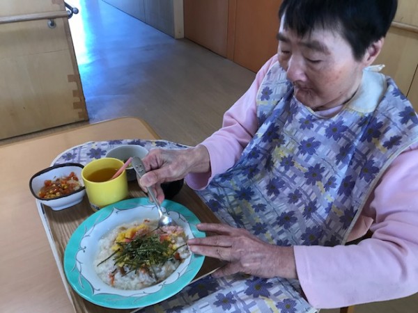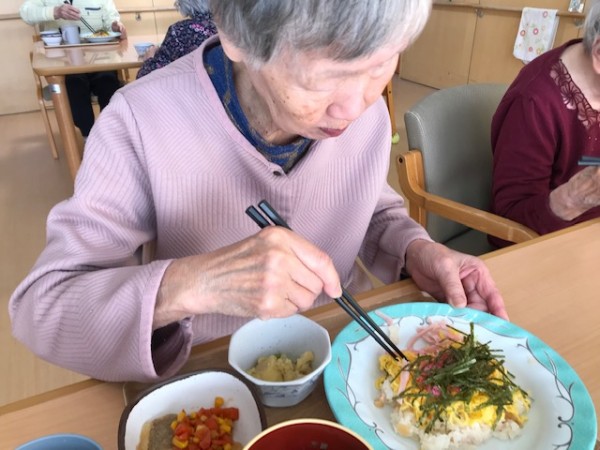 今日は入居者様にもお手伝い頂いて、お昼ご飯にちらし寿司をお出ししました。