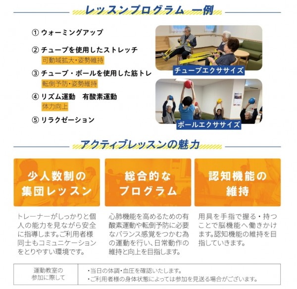 「お腹から声を出し、おとなりさんと笑いあいながら安全・簡単に運動を続けていけるようトレーナーがサポートします!奮ってご参加ください♪」