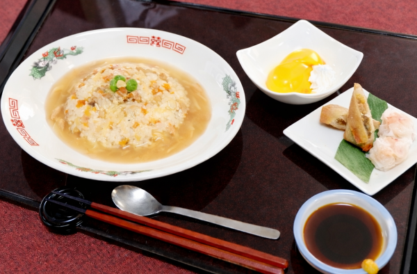 食べやすくも贅沢感のある、ふかひれの旨みをしっかり感じられる餡かけチャーハンをご用意します。