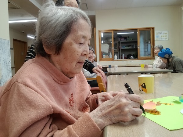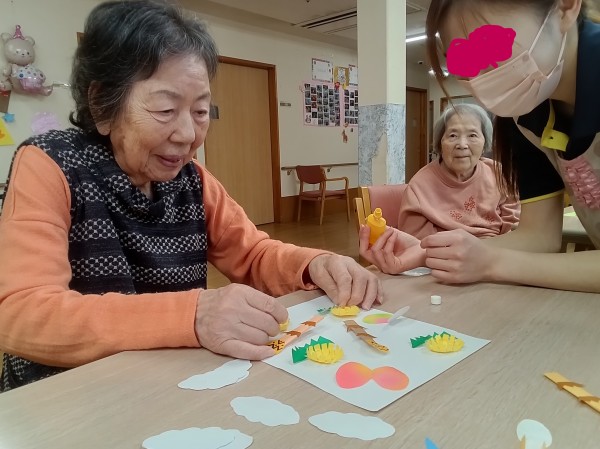 少しずつご利用者様とスタッフで紙を切ったり・貼ったり・色をつけたり・折り紙をおったりと
