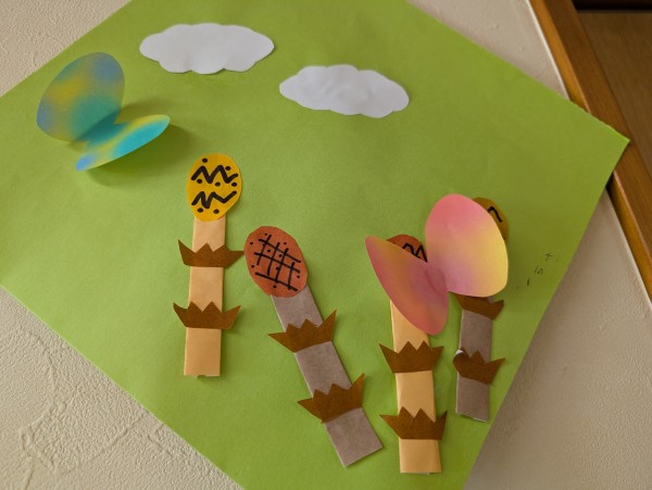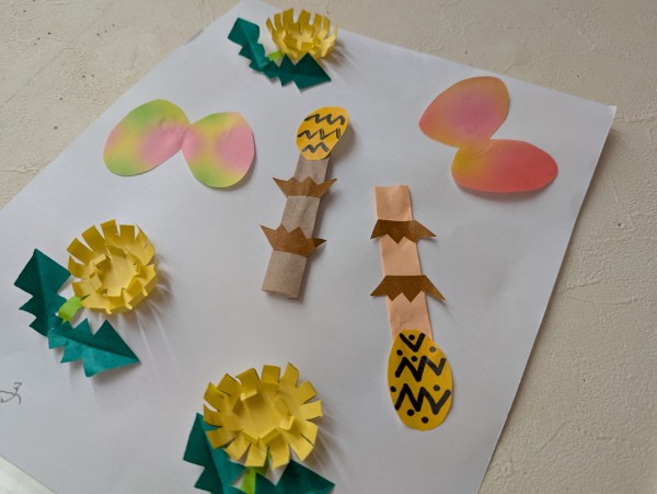 たんぽぽ・つくし・蝶々をバランスよく貼り付けていきます。