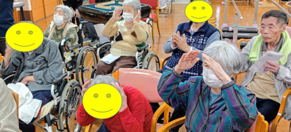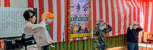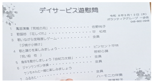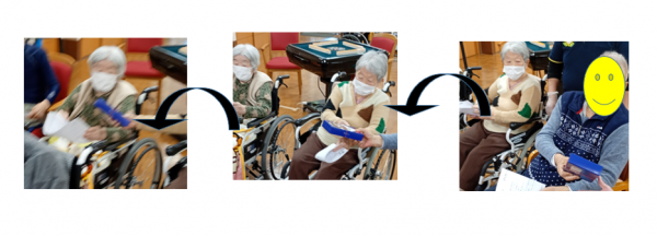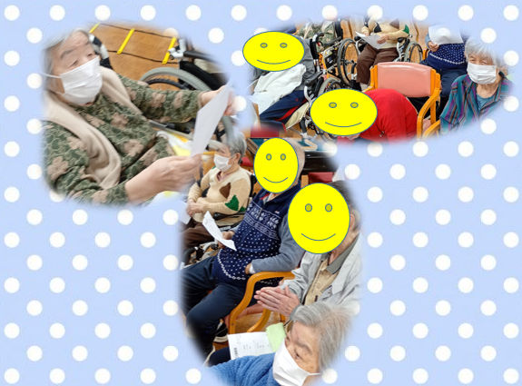今回は、一階のデイサービスにボランティアグループの一歩会の方々が来てくださったので参加させていただきました。