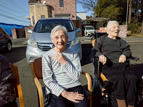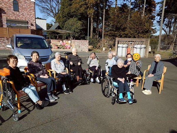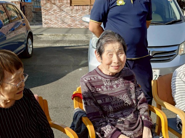 「どこ行くのぉ」といやいやだった利用者様も、一歩外に出て暖かな日差しを浴びると「気持ちが良いねぇ」と皆様笑顔(*^^)v