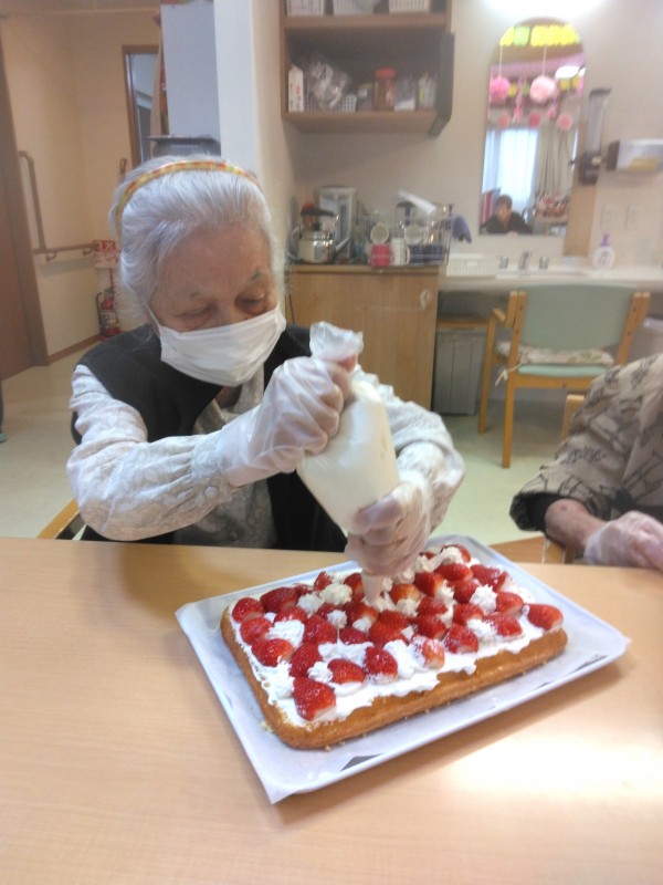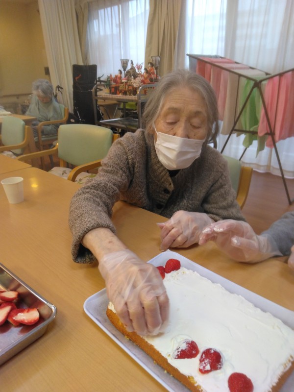 ひなまつりパーティーの前に、いちごショートケーキのデコレーションを行いました(о´∀`о)
