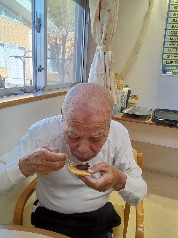 今日は、おやつレクリエーションとして「どら焼き」に挑戦!