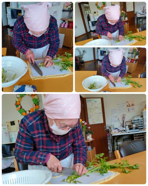 せりに包丁を入れると、さらにいい香りがします(*´ω`)