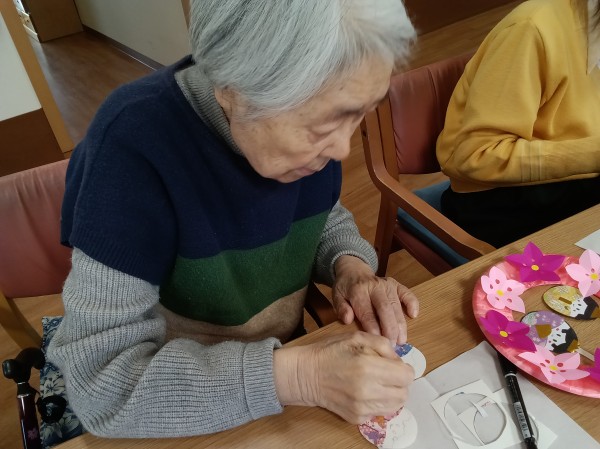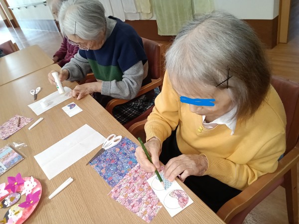 見本が映っていますが、かわいいひな人形の壁飾りを製作中です。
