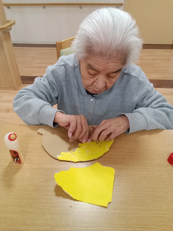 黄色い帽子を作成中♪何が出来るかお楽しみに♡