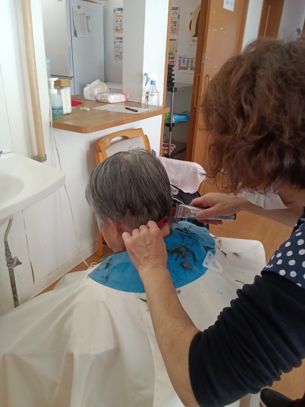 訪問理美容の様子【グループホームみんなの家・横浜市ヶ尾】