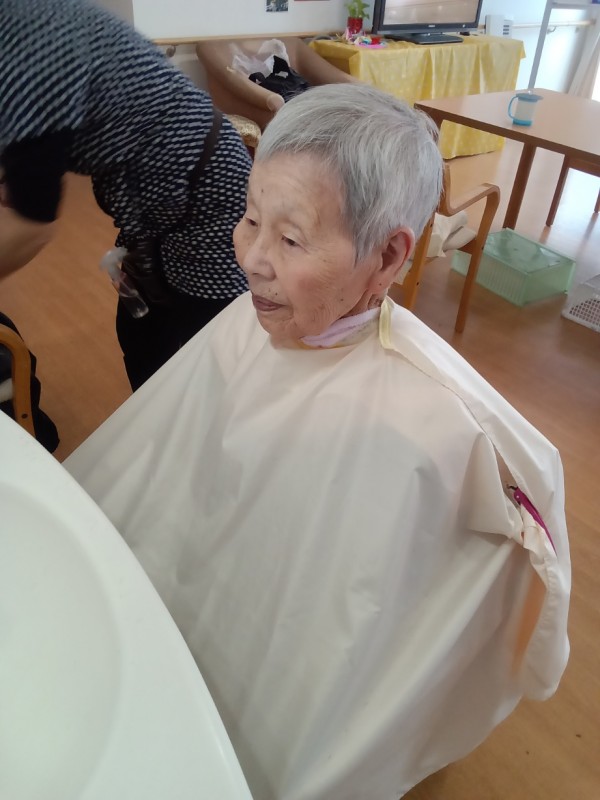 先日、ホームに訪問理美容の方に来ていただき、皆さまのヘアカットを行いました。