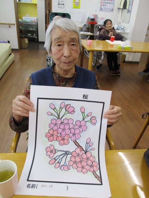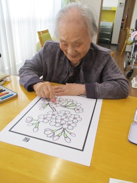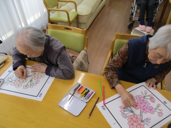 今日は2階で桜の塗り絵を行いました。 塗られているご様子をお知らせいたします!!