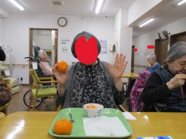 おみかんとあめです。 嬉しそうに召し上がれていました(*^_^*) 美味しい・美味しかった!と話されておりました!!