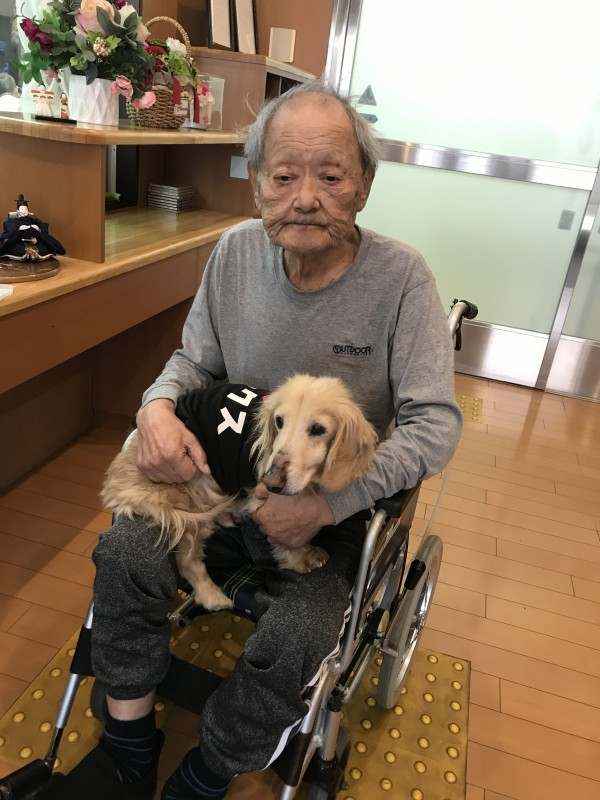 皆様が散歩に行かれている最中に別でご面会に来てくださったご家族様がご自宅の愛犬を連れて下さいました、勿論覚えており最後までそばで撫でておられました(*^^*)