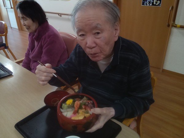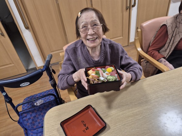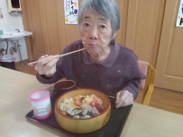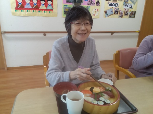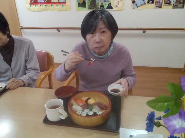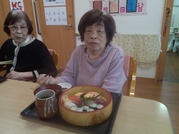 ●〇グループホームみんなの家・川崎久地「嬉しい・美味しい・お寿司の日! ~地域のお寿司屋さんからの出前昼食だ!~」〇●