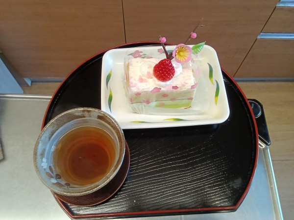 ひなまつりバージョンケーキがありましたので、おやつでお出ししました。