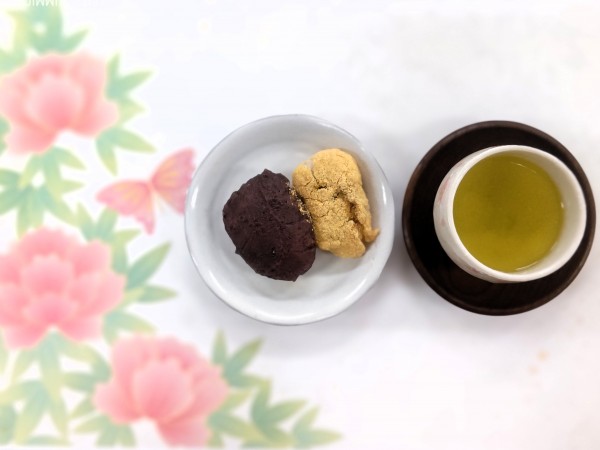 もう一方はラップに広げた餡子の真ん中にのせて包んでいただきました。
