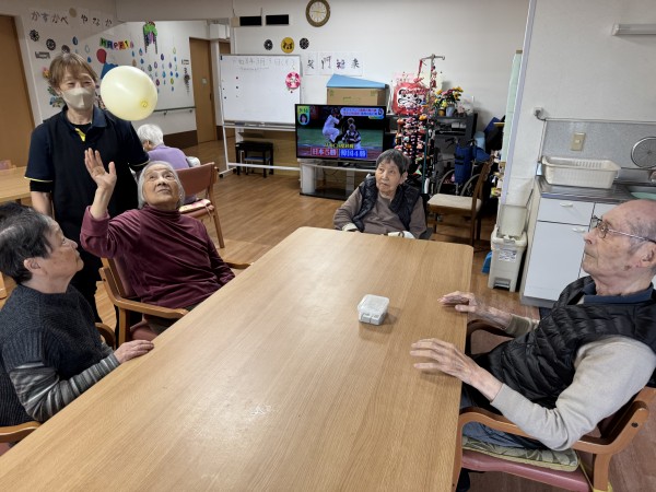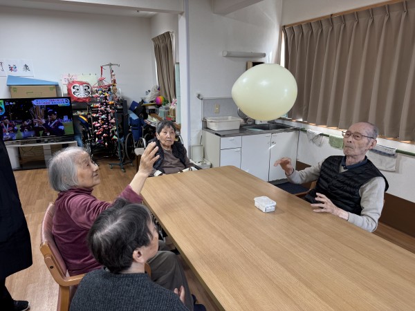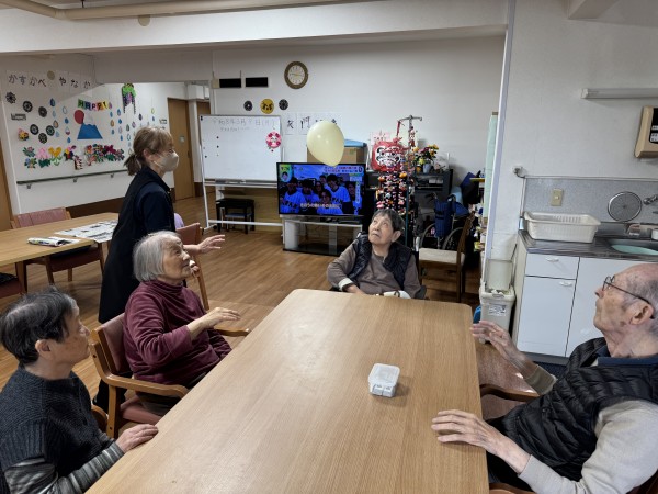 ホールにいらっしゃったご利用者様と風船バレーです(^^)