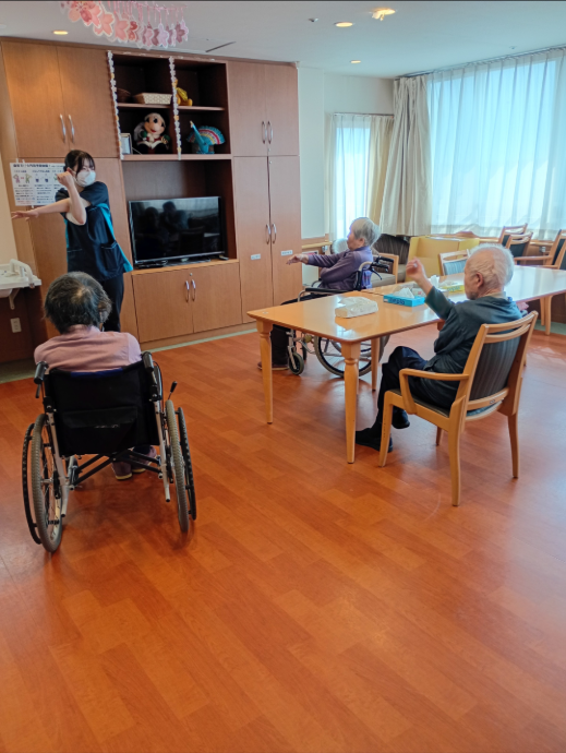フロアーごとに運動に取り組めたので、利用者様方が階移動で負担になることもなく実施できたかと思います^^