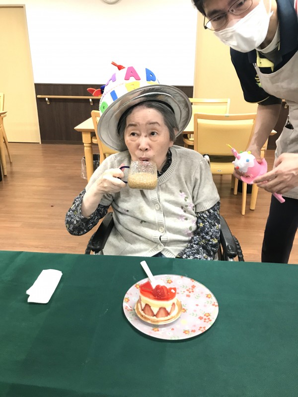今日は3月と4月うまれのご入居者様3名の合同お誕生日会をいたしました(*´▽`*)