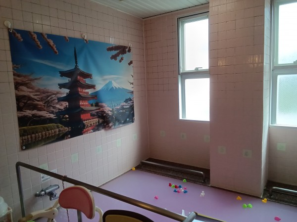 16日から期間限定で始まった「さくら湯」の様子です♪