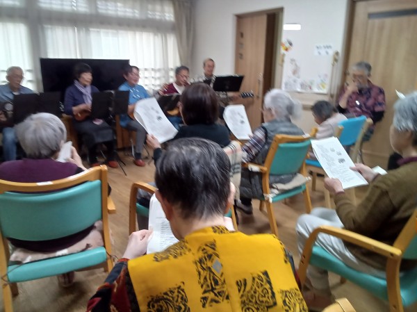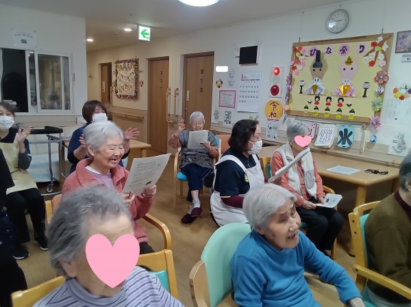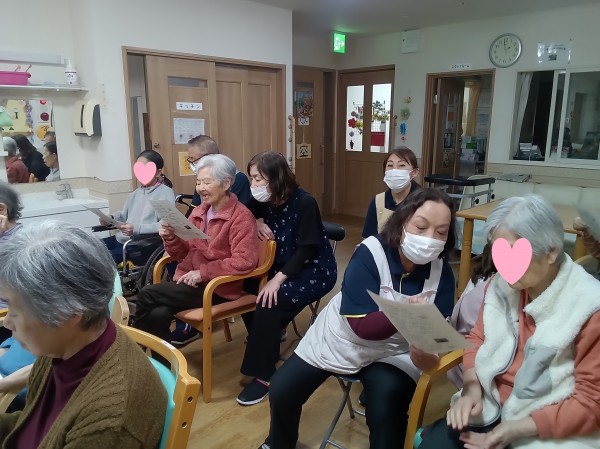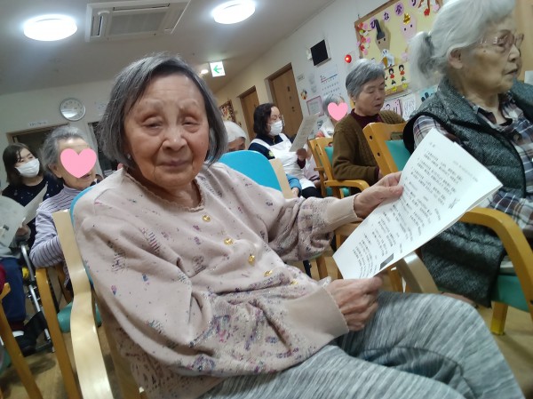 ご利用者様と職員も一緒に大きな声で歌います❣