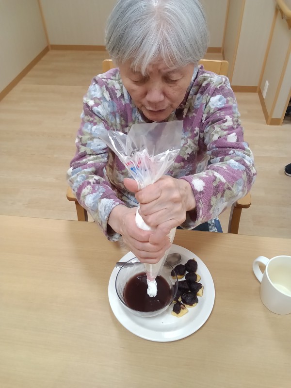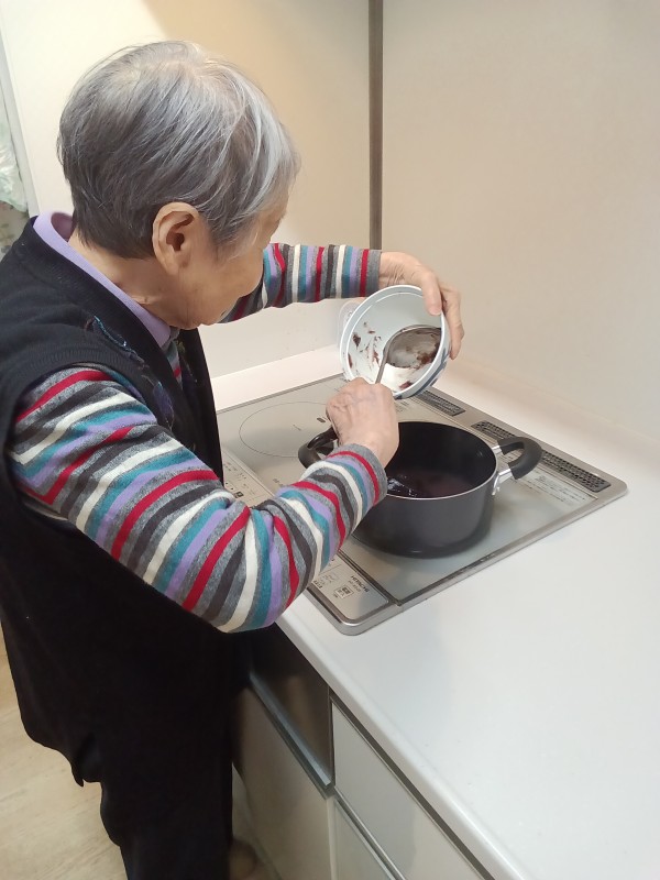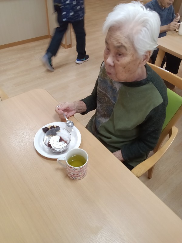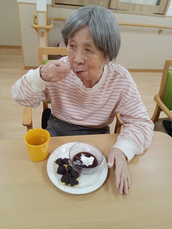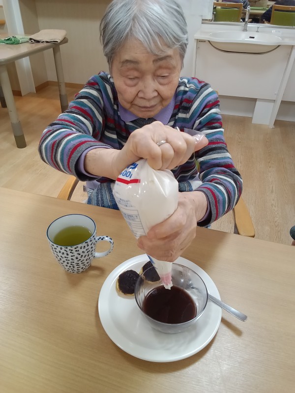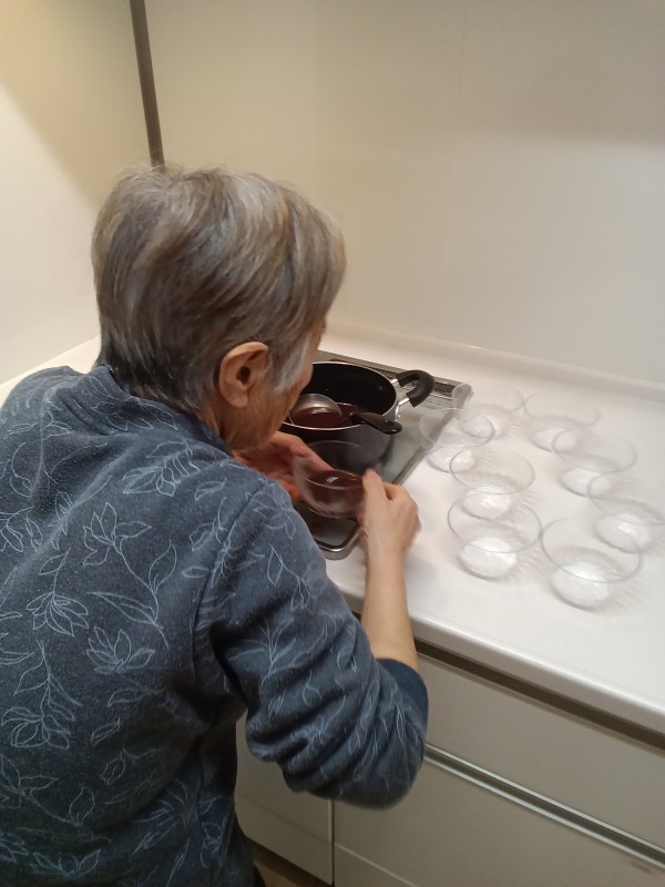 春のお彼岸の期間という事で、本日のおやつは入居者様と一緒に作った「あんこゼリー」です。