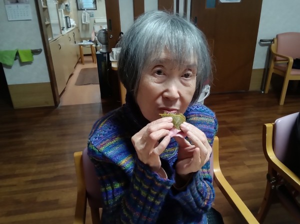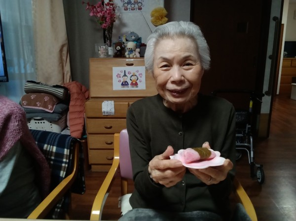 今回はおやつの時間の一コマなのです。ホーム長が買ってきてくれた桜餅!!
