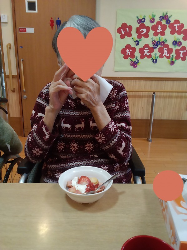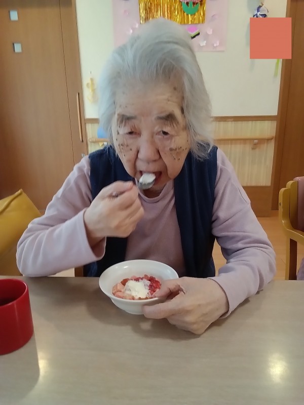今月はスタッフ手作りのイチゴケーキでお祝いをいたしました。
