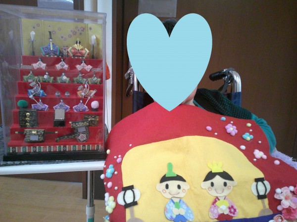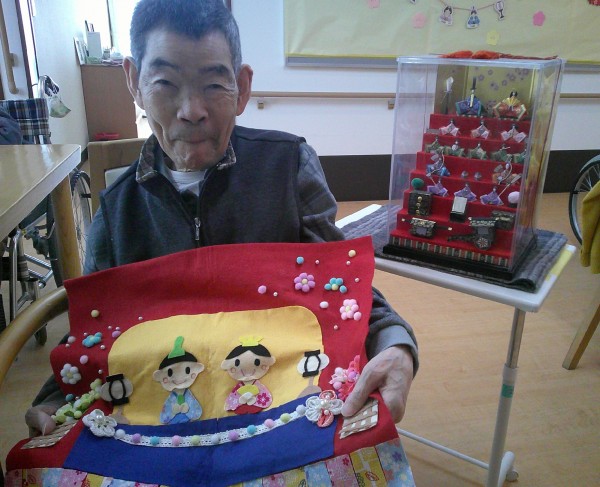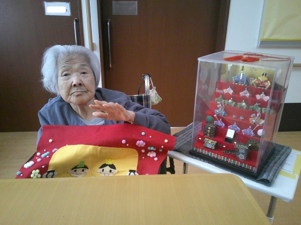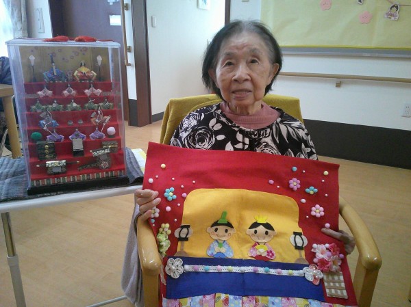 実はこちらの雛人形は職員のおばあ様の手作りなのですが、そのことをお伝えすると「こんなに細かく可愛いものが作れるなんてスゴイΣ(・ω・ノ)ノ!」ととてもびっくりされていました('∀')
