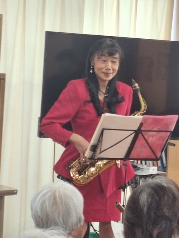 先日、デイサービスセンター遊・府中の皆様と一緒にサックス奏者の方に来ていただき、演奏会を開催して頂きました。