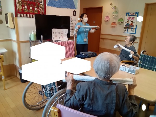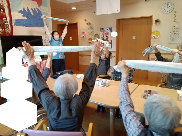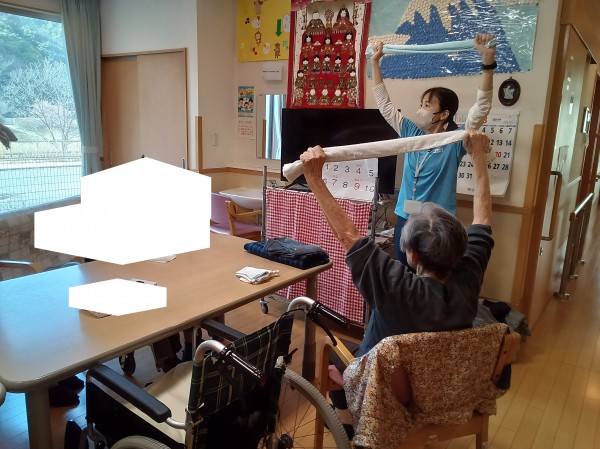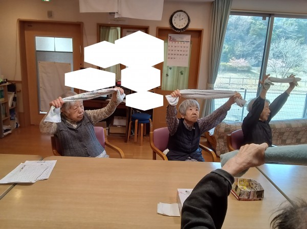 タオルを使用して体操を実施。