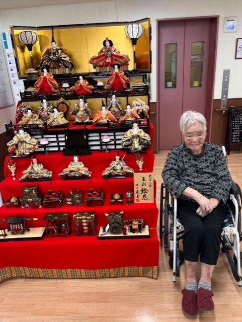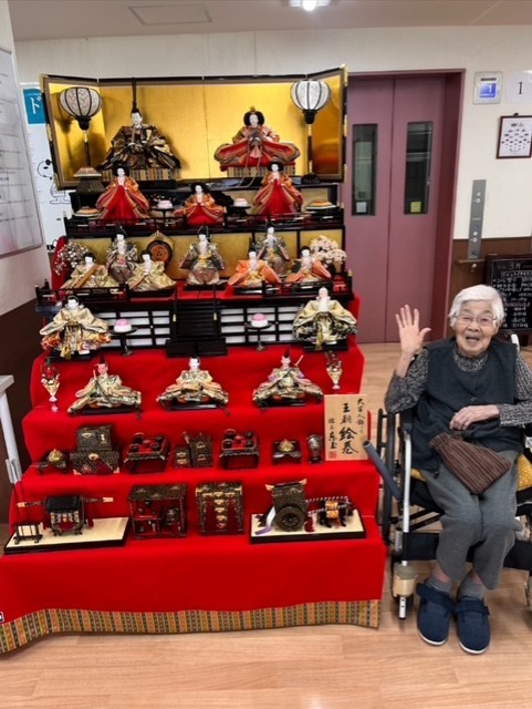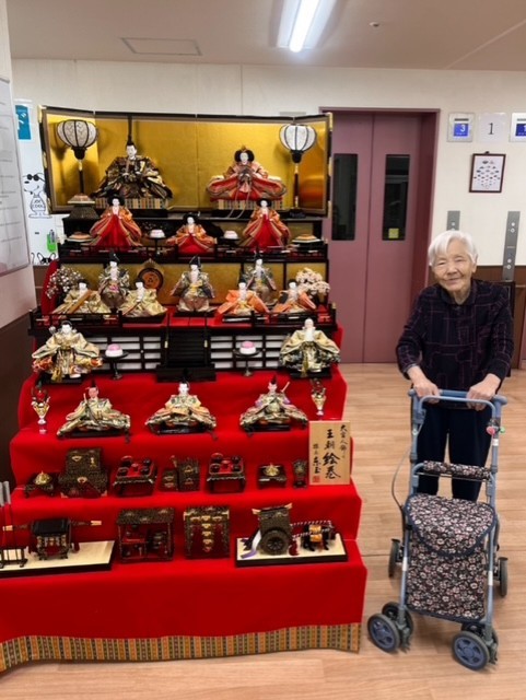 七段飾りの雛人形が並ぶと、施設内も一気に華やかな雰囲気に。