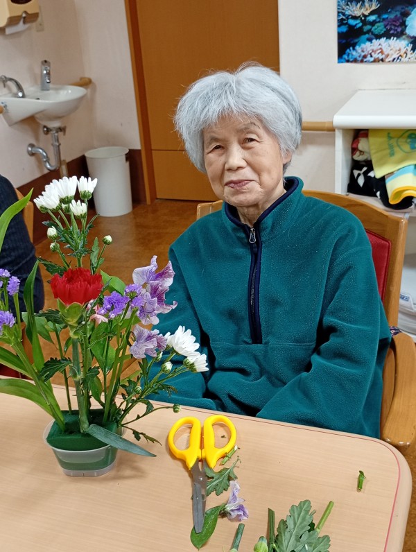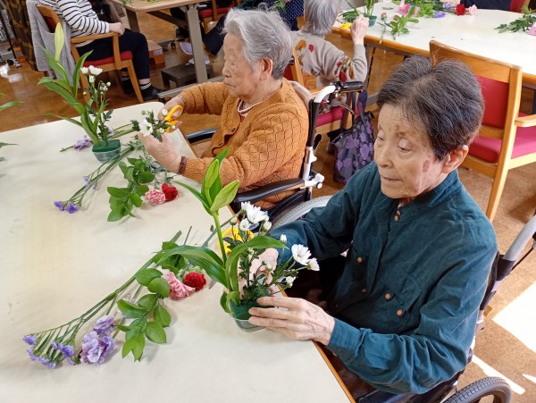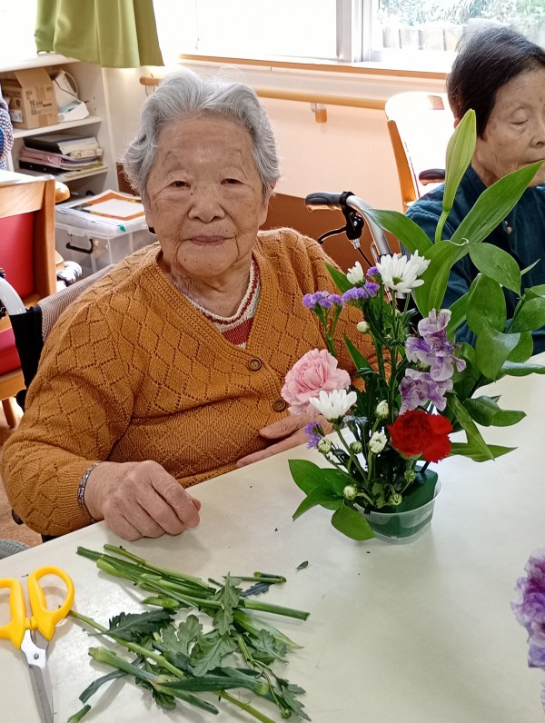 今回は、1Fデイサービスと合同でフラワーアレンジメントを