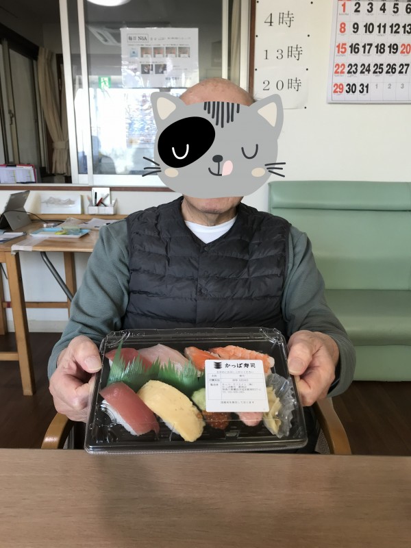 今回はかっぱ寿司に出前をしてお寿司を食べました(≧▽≦)みんな大喜びです♪