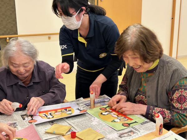作っている間もおしゃべりが止まらず、とっても楽しそうなご様子!職員も「いいですね~」「その色かわいい!」と一緒に盛り上がりながらお手伝いしました