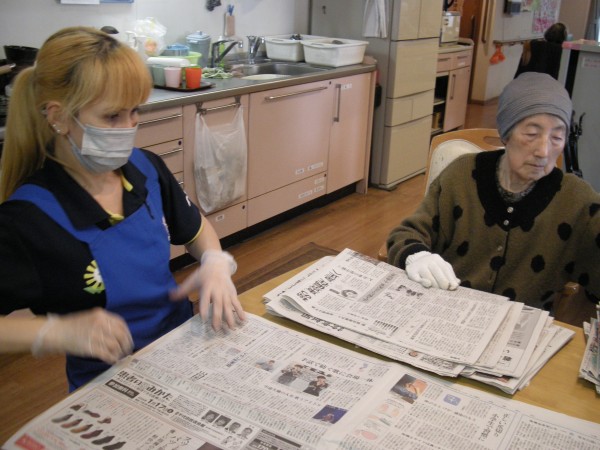 施設では、日々の生活の中で皆さまにたくさんのお手伝いをして頂いています。