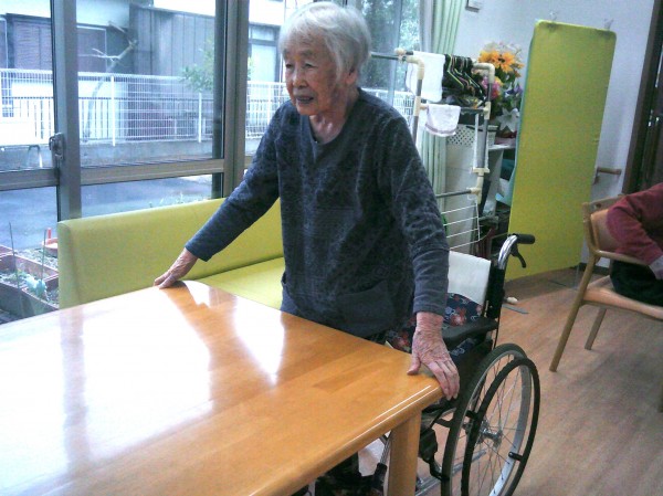 車椅子から前かがみになり、立ち上がりまた座り繰り返しの練習動作を行いました。 ゆっくりと行いました(*´ω`*)・・・