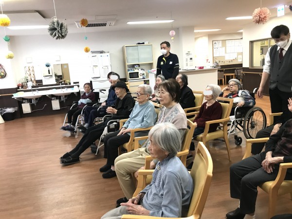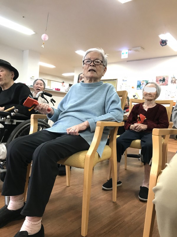 簡単な体操や、楽器を使った合奏、会話も楽しみます。