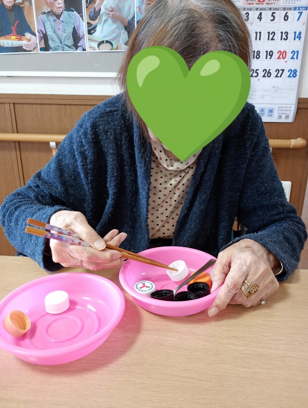 ある方は…お皿からお皿へ箸でペットボトルのキャップを運んでおりました。