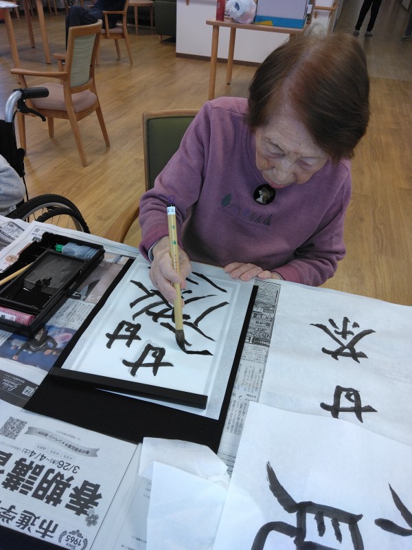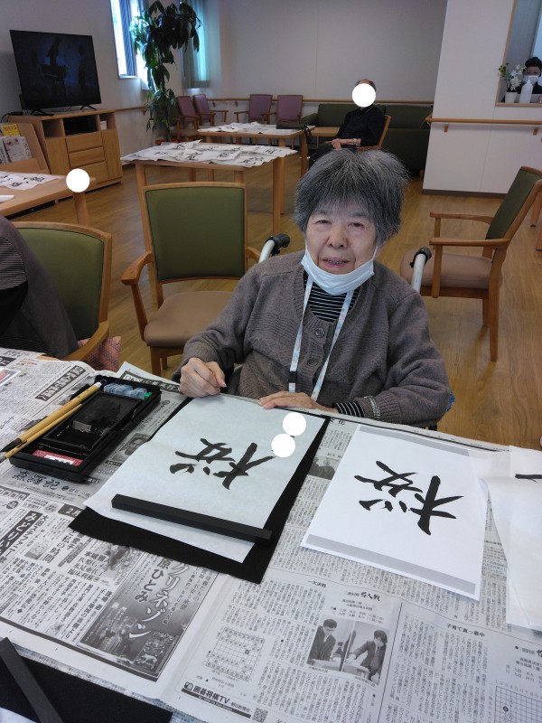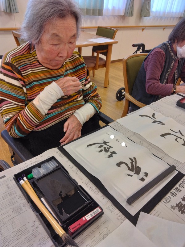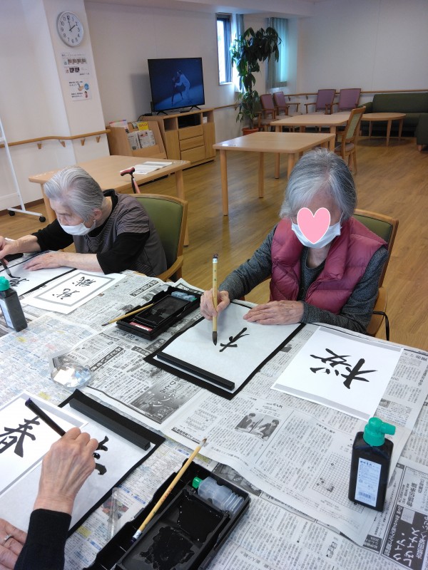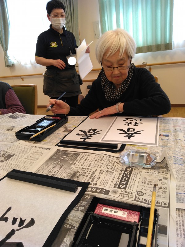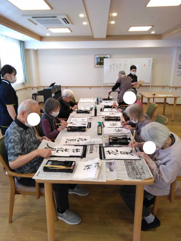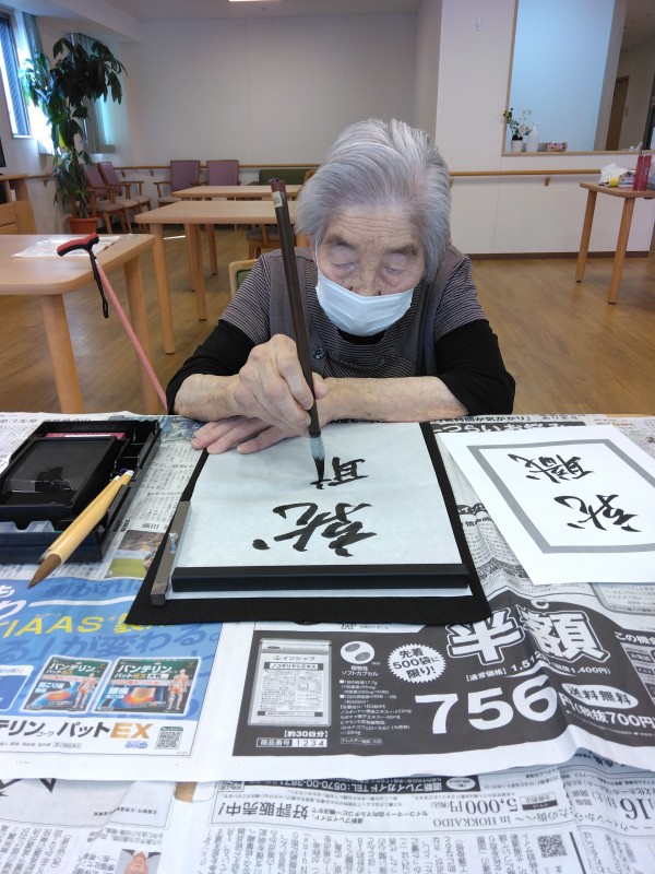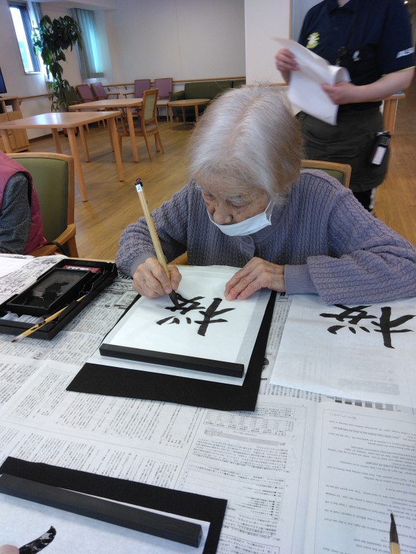 アミカの郷小平あじさい公園の人気レクリエーションお習字の様子をご紹介します。