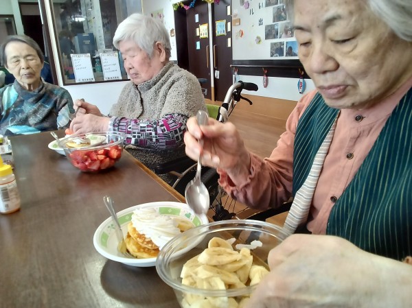 今回はみなさんに、ありがとうの気持を込めて、甘々のパンケーキを召し上がっていただきました(^_-)