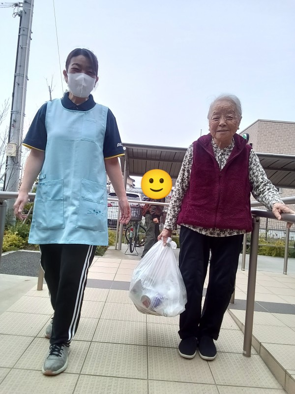 利用者様が朝のゴミ捨てを手伝ってくれました