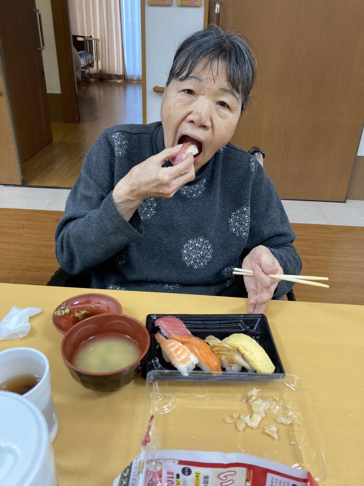 やっぱりお寿司が好きな方は多く、今日のお昼はお寿司ですよ!ってお話しすると