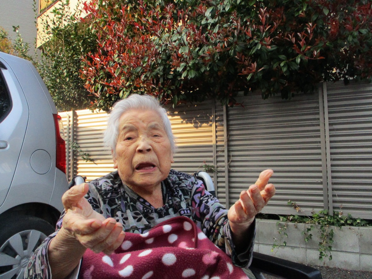 先日、暖かくなってきたので入居者様と一緒に駐車場の先までお散歩に行ってきました。
