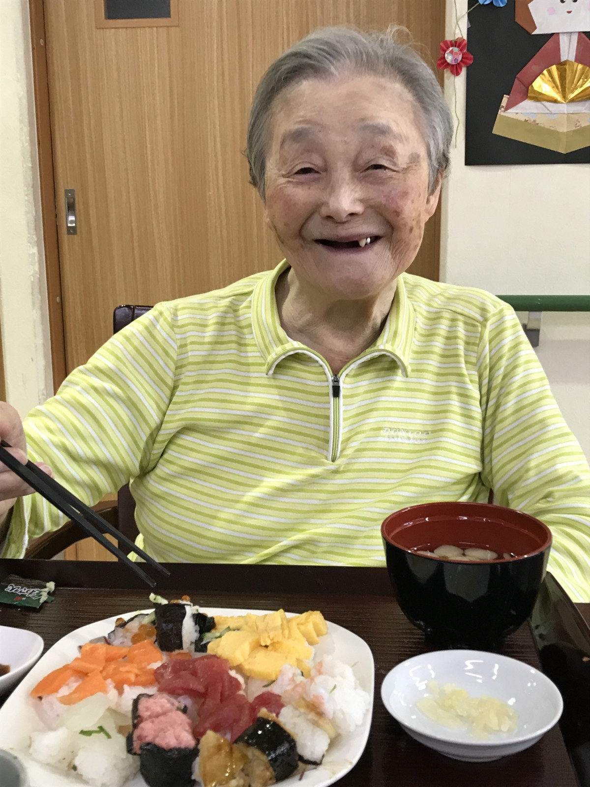 お誕生日会の日の昼食では お寿司をお召し上がりになりました