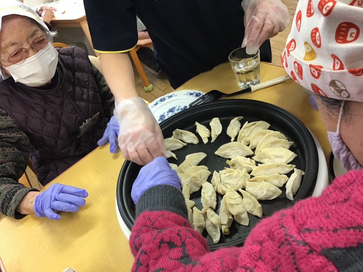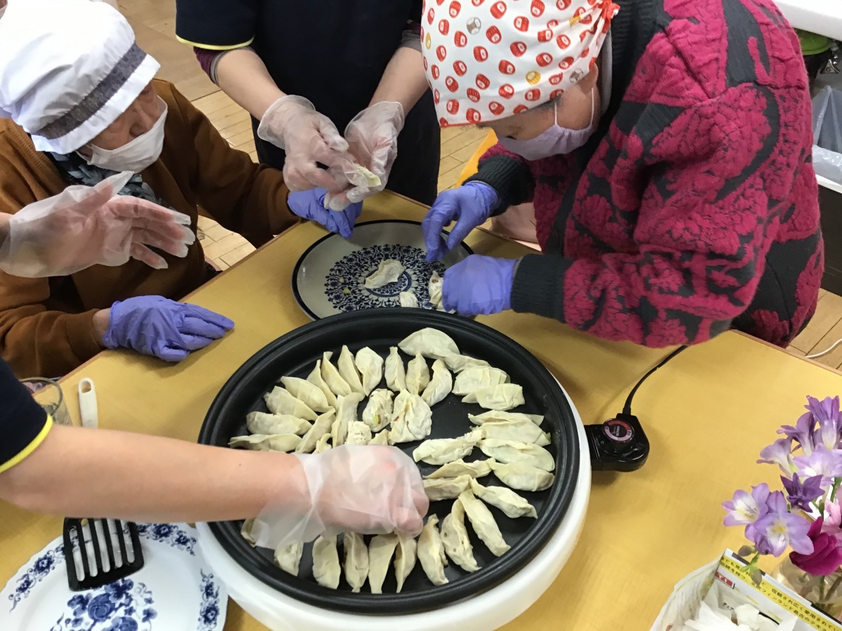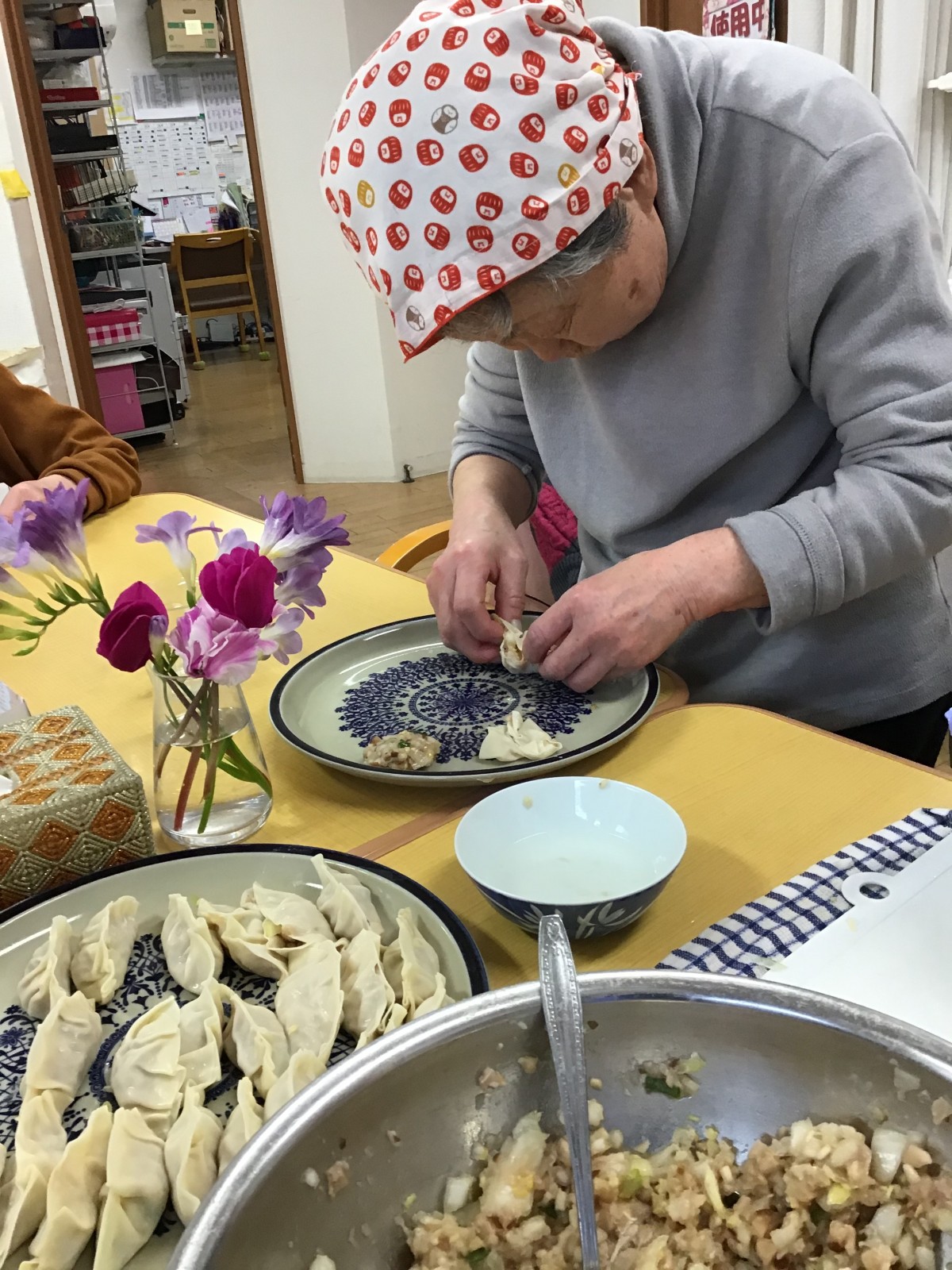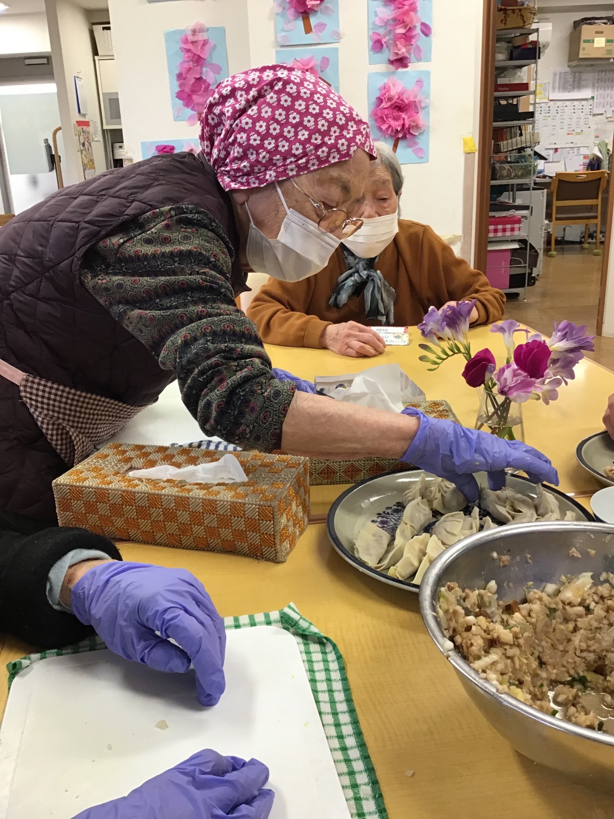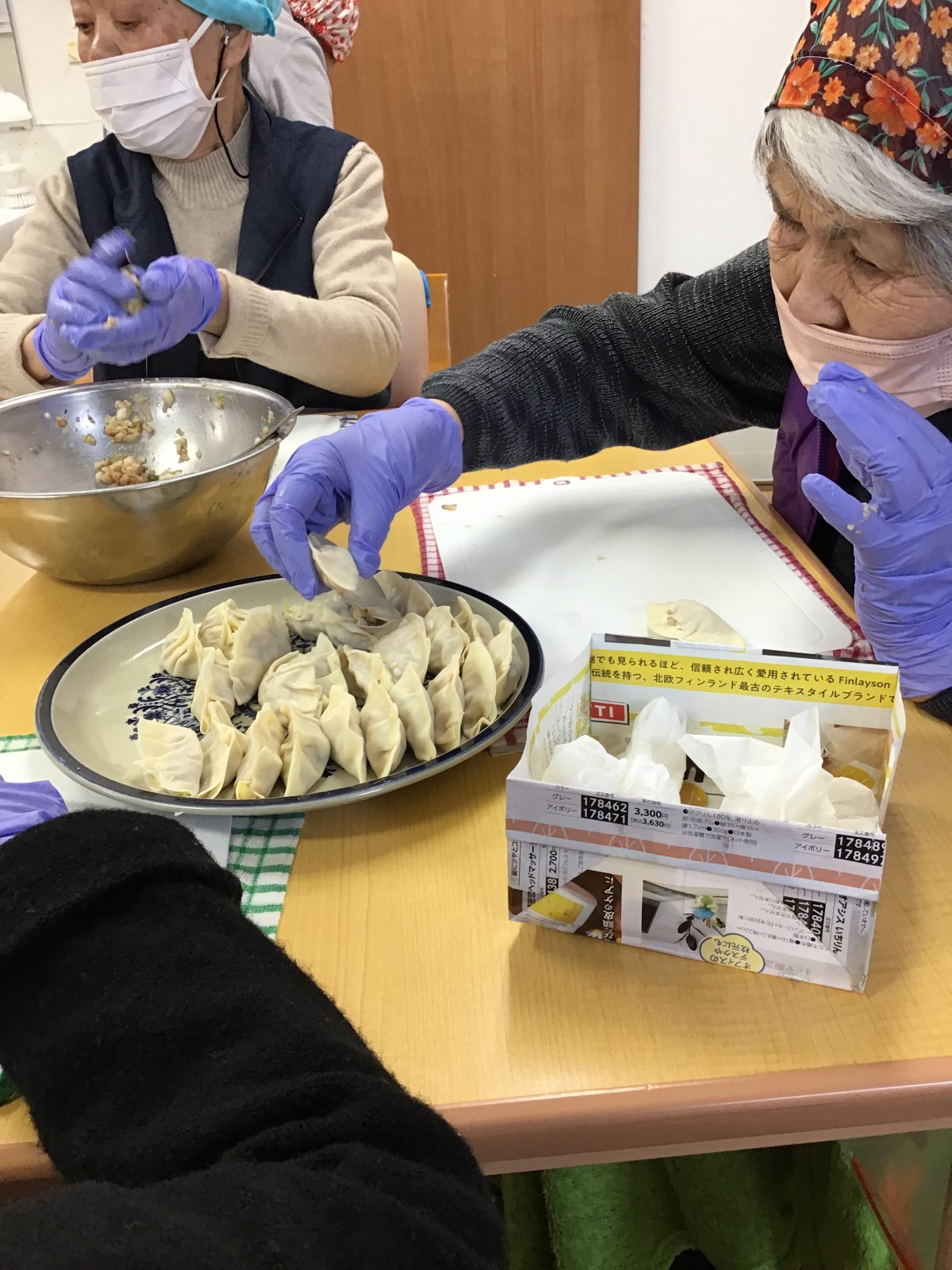 皆さんで協力しながら、餃子の皮で包みましょう~(^_-)-☆