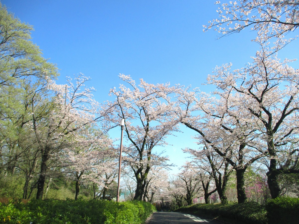 ドライブコースの桜をのせます。 ※助手席の職員が撮影しました。