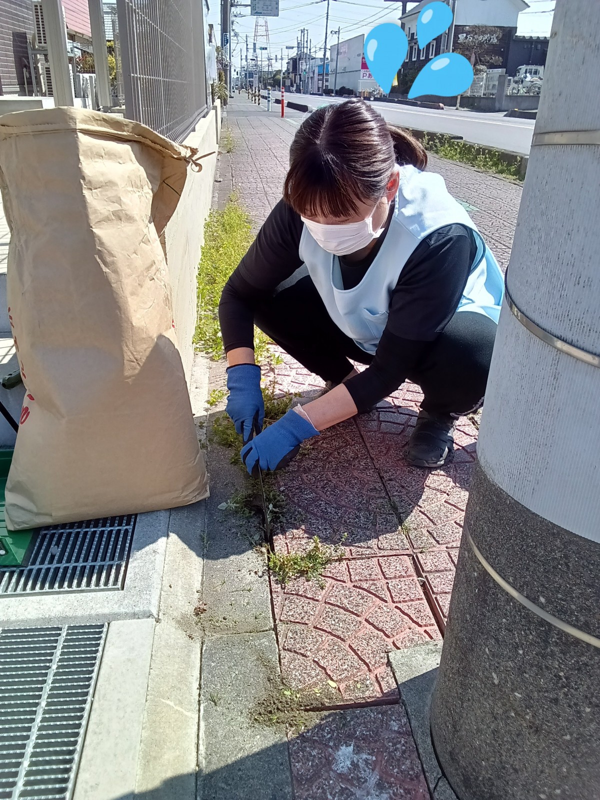 散歩から戻ると電柱のかげからカマを片手に「お帰り〜♪」かげで頑張るホーム長の元気な声が聞こえました♡雑草取りお疲れ様ですm(_ _)m