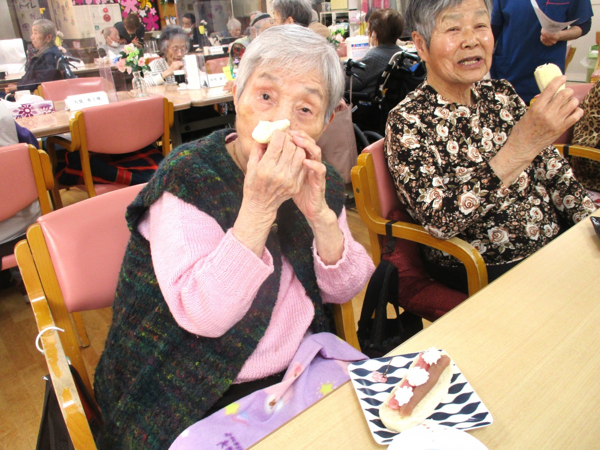 ご利用者様からは「春を感じるね」「見た目もきれいで美味しい!」と大変ご好評をいただき、笑顔あふれるおやつの時間となりました。