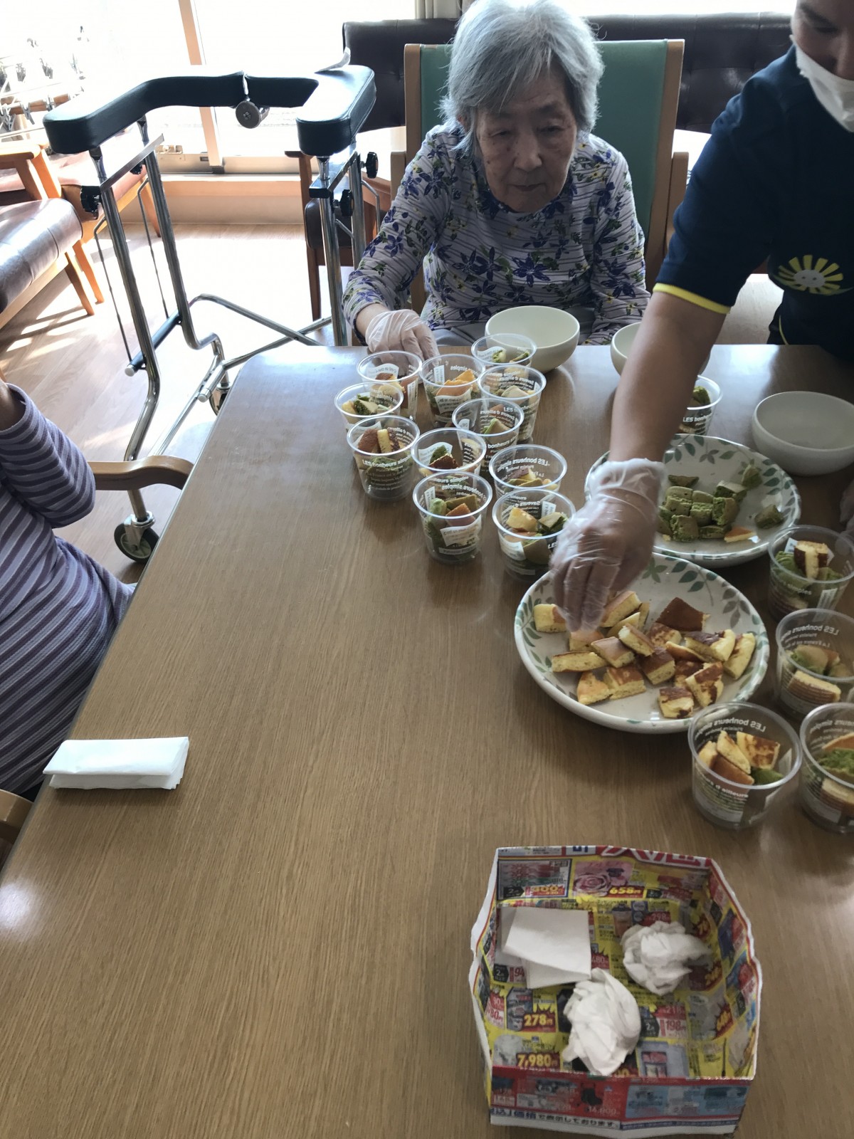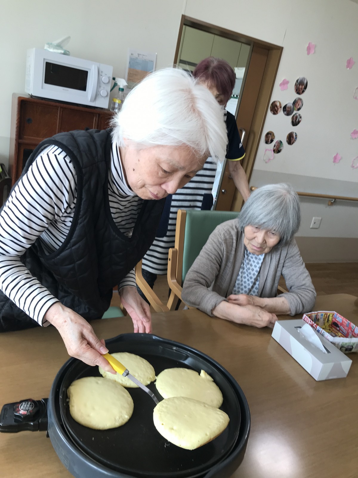なんと!2種類の生地(バニラ・抹茶)を作り、焼いて、飾りつけまで♪
